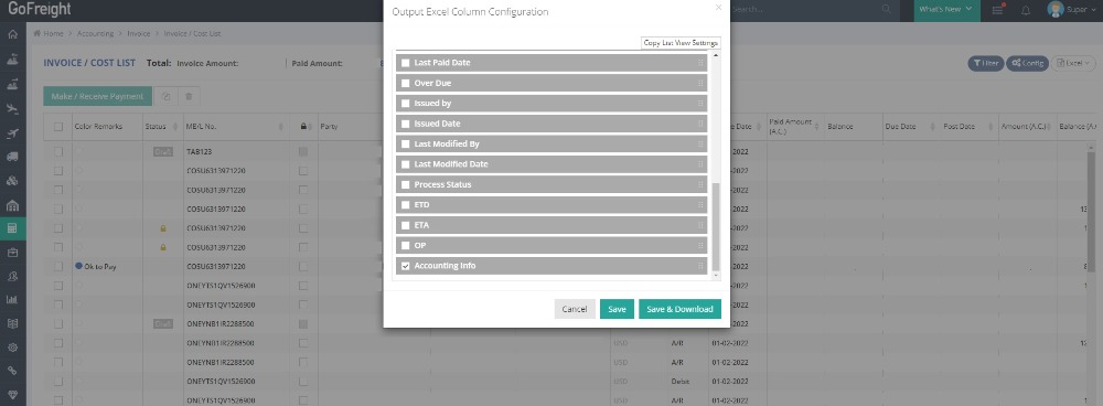 Accounting details for shipment invoices can now be exported to Excel